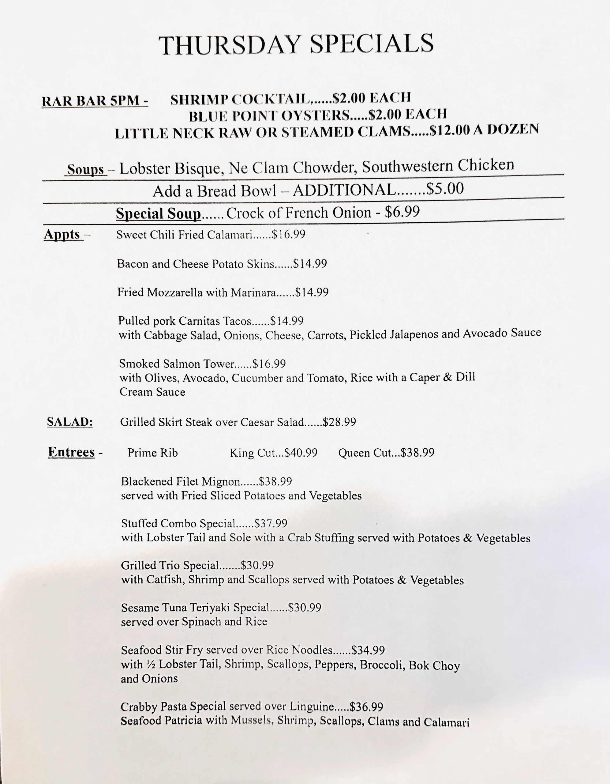 1/9 Dinner Specials