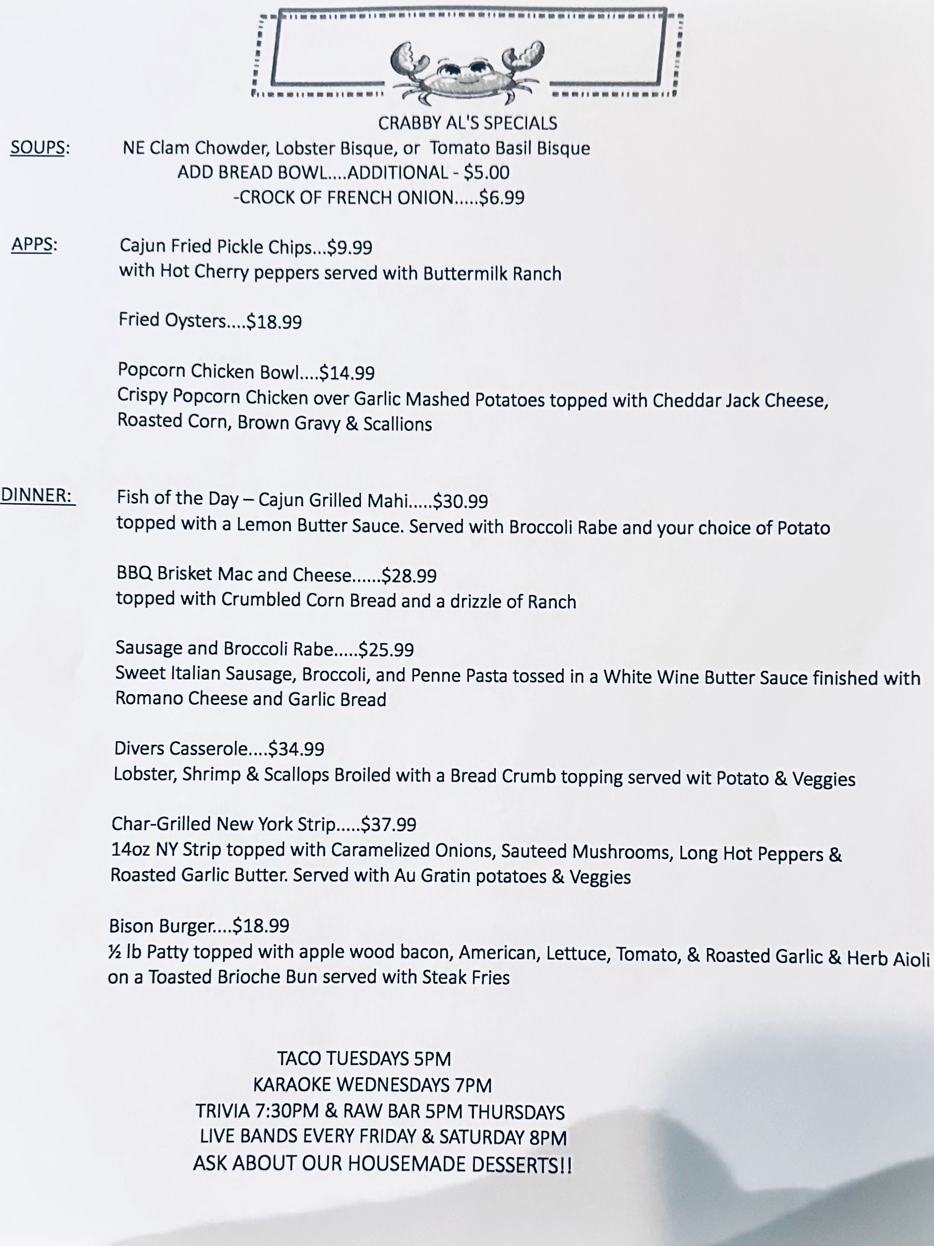 Book your Holiday Gatherings at Crabby Al’s!