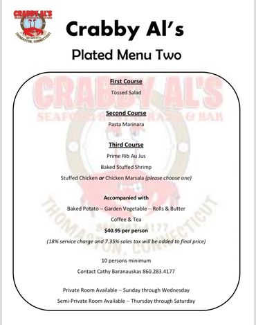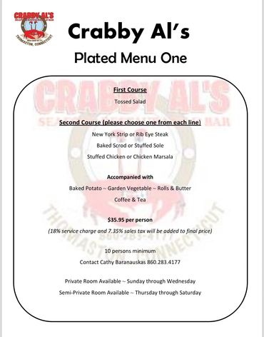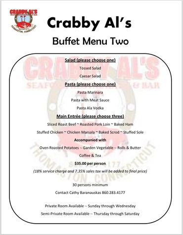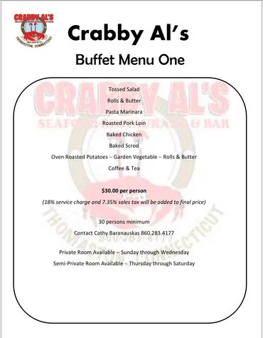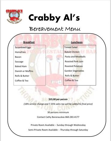 Crabby Al's has been host to many company parties, bridal/baby showers, birthday, and retirement parties on-site. We also offer a bereavement menu and will coordinate to ensure a relaxing gathering. Please contact